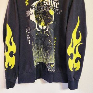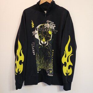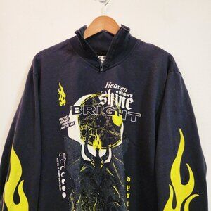The Killstar Gothic Kult Unisex Oversized Kapuzen pullover Shine Sweatshirt in size L is a stylish and edgy piece perfect for those who embrace gothic, punk, and dark academia aesthetics. Made from 100% cotton jersey fabric, this pullover sweater features a high neckline with a zip accent, a print graphic on the front and sleeves, and ribbed cuffs and hem for a comfortable fit. The black color and shine bright pattern graphic add a touch of glam to this piece, making it a versatile option for casual occasions in the winter, fall, and spring seasons. Compatible with both men and women, this sweater from the brand Killstar is a must-have for those who appreciate dark and unique fashion choices. In Excellent Pre-Owned Condition. Please pay attention to the measurements, this is final sale no return for reason of measurement except the product not like the description when you receive.