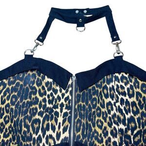 Rock this Killstar Man Eater Leopard Dress! It's a size 4XL and features a neck choker with a zip front and strappy bondage accents. The fabric is stretchy, making it very comfy. Though the skull zipper pull is missing, the hoop is still attached, making it easy to zip. Get creative and add your own fun charm! Otherwise, this dress is in great condition.
