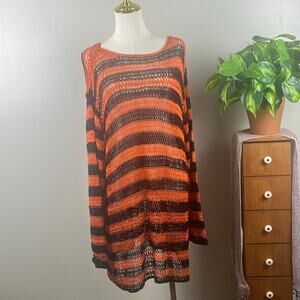 Killstar Orange and Black Open Weave Knit Long Sleeve Sweater Size Large