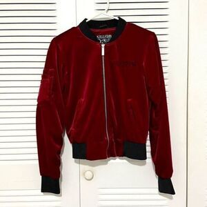 Killstar Red with Black Velvet Jacket with Zipper and Pockets Small S