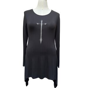 Killstar Repent Long Sleeve Asymmetric Hem Tunic Women's Size XL Black