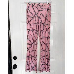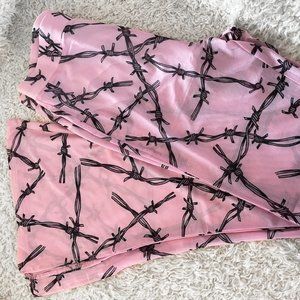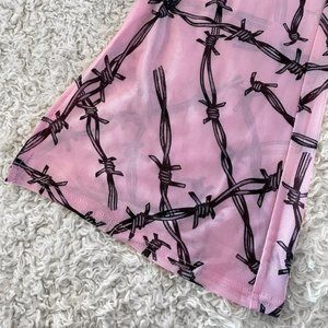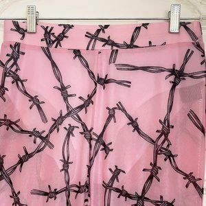 Pretty in Pink! These flares are a pastel goth's dream, featuring soft, sheer mesh fabric, statement design, split hem, and an opaque built-in panty. With KILLSTAR branding, 95% Polyester, 5% Elastane. Completely sold out on website. New in package (did not come with any tags).