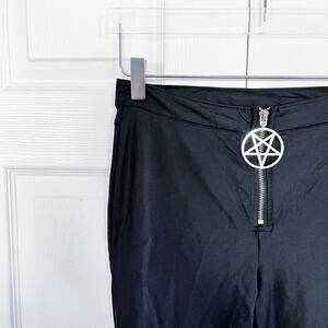 Disco Obskura. 100% nylon leggings. Pentagram front zipper. Back pockets with belt loops.