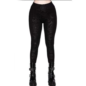 Killstar Telepathic Leggings ✦ Black-on-Black Statement Print ✦ Cotton Stretch