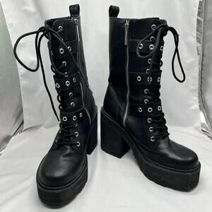 Killstar Vendetta platform boots Size 10 goth punk witchy buckle chunky heel. Faux leather.