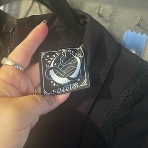 The Weird Sister collar dress from Killstar is the absolute definitive PERFECT black dress. This ghoul-worthy silhouette features an exaggerated bat collar, sleeves with extra long buttoned cuffs, little ruffled trim, and an amazing ruffled bib detail. It's comprised of a super stretchy bengaline fabric, so it will hug your curves just the way you like!