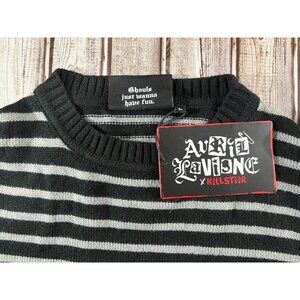 Killstar X Avril Lavigne anti-dote knit striped sweater sz L color Grey NWT Y2K