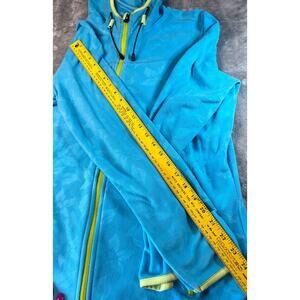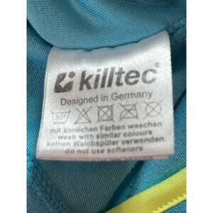 Killtec Technical Teal Hoodie Full Zip Jacket Floral Pattern Neon Yellow Trim