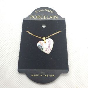 Kiln-Fired Porcelain Crystal Heart Necklace