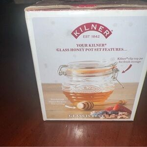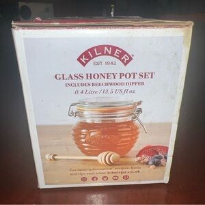 Kilner Honey Pot With Dipper 13.5 Fluid Ounces Glass Storage W /Clip Lid nwt