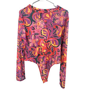 Kilo Brava Long Sleeve Pink Paisley Mesh Bodysuit - Size XXXL (22-24)