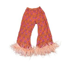 Kilo Brava Feather Trim Shell Print Pants S | Vacation Lounge Party Glam Look
