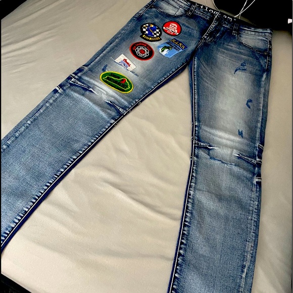 Jean blue Has different patches stitched on Brand New Never Worn Before