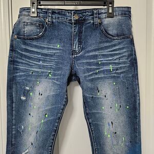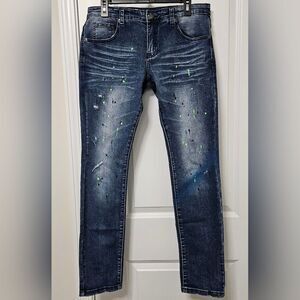 Kilogram Jeans Men's 33x31 Blue Splattered Slim Straight Leg Distressed GUC