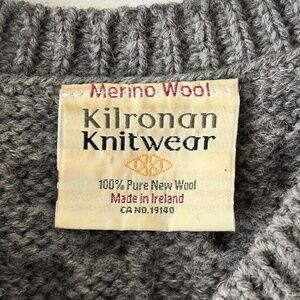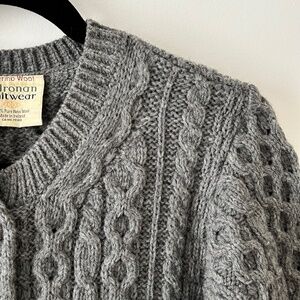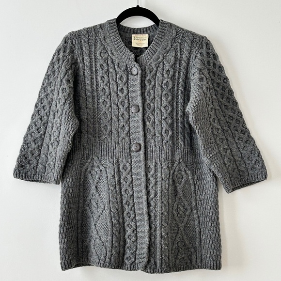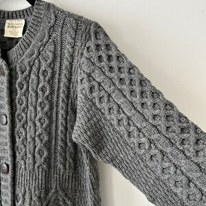 Kilronan Knitwear 100% Pure Merino Wool Gray Cardigan Made In Ireland