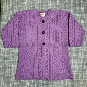Kilronan Knitwear Cardigan Ireland Merino Wool Aran Style Lilac Rose Women’s S