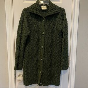 Kilronan Knitwear Cardigan Women’s Med Wool Cable Knit Chunky Sweater Green