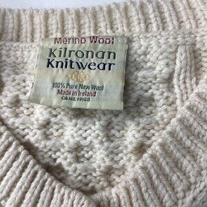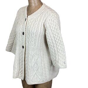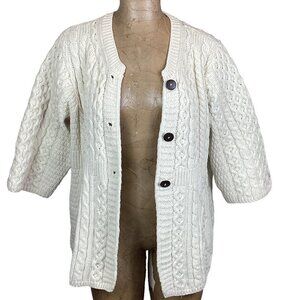 Description: Kilronan Knitwear Merino Wool 100% Pure New Wool Made in Ireland - 3-Button Cardigan Sweater. One extra button sewn inside.