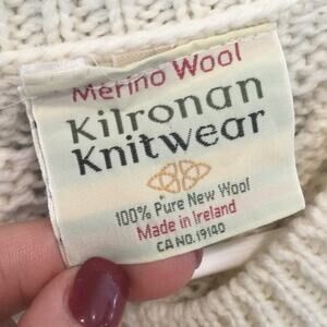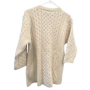 Kilronan Knitwear Womens Cable Knit cardigan L White Ireland Wool Fisherman NEW