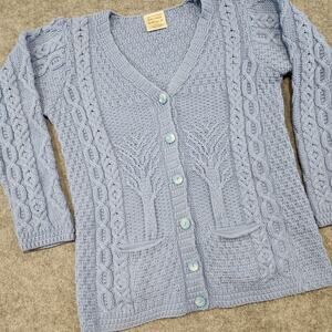 Kilronan Knitwear Womens L Large 100% Merino Wool Cableknit Cardigan Sweater
