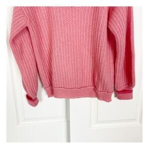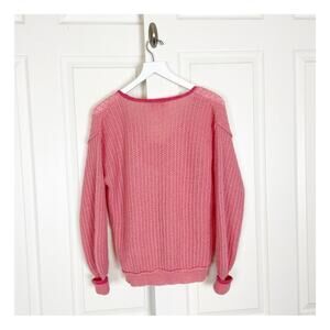 new without tags pink tipped v-neck sweater from Kilte Collection. lightweight open knit silhouette with exposed seam detail. 30% cashmere 30% silk 40% alpaca. hand wash.
