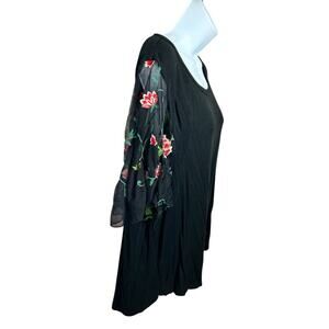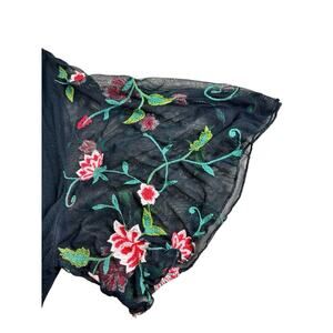 Kim & Cami Black Blouse Sz 1X Embroidered Floral Flutter Short Sleeves Top