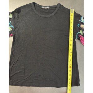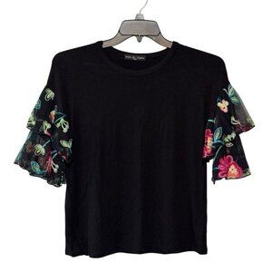 Kim & Cami Embroidered Floral Flutter Short Sleeve T-Shirt Top Boho Basics