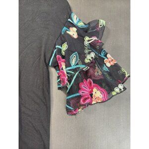 Kim & Cami Women Embroidered Sheer Floral Flutter Tiered Short Sleeve Boho Top