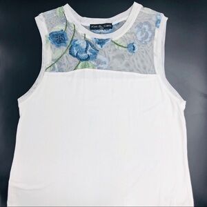 Kim & Cami | Floral Embroidered High Low Tank Top