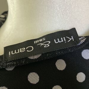 Kim & Cami Sleeveless Black Mock Ruffled Neck White Polka Dots Sheer S