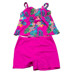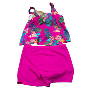 Kim Gravel x Swimsuit For All Womens Pink Floral Padded Tankini Shorts Size 14