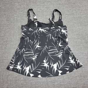 Kim Gravel x Swimsuits For All Printed Tankini Set w Bike Shorts Size 10 Black
