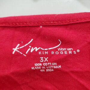 Kim Kim Rogers Woman's Red Basic 3/4 Sleeve V-Neck Tee T-shirt Plus Size 3X