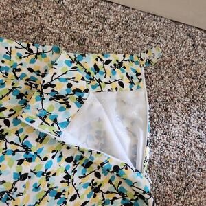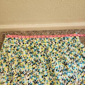 Bright colorful trumpet shaped 100% linen skirt. Fully lined with a side zipper. Perfect condition. Measures approximately 18 1/4" flat waist and 32" full length.