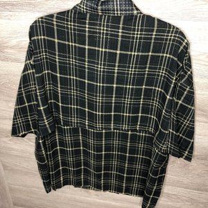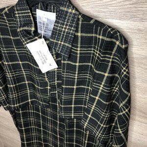 Kim Nam Woo Womens Large Layered Button Front Short Sleeve Plaid Shirt NEW