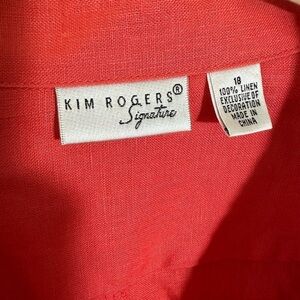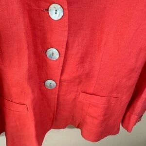Kim Rogers 100% linen 3/4 sleeve coral pink women mother of pearl buttons jacket