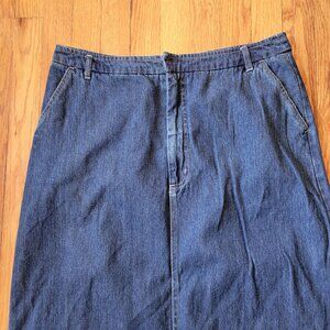 Kim Rogers 16 Blue Jean Denim Skirt Pockets Belt Loops Back Slit Yellowstone