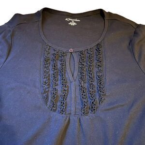 Kim Rogers 1X Top Long Sleeve Black Blouse Ruffle Neck Collar Tshirt Shirt