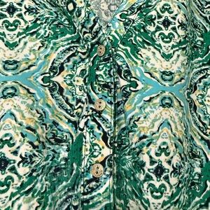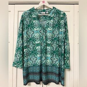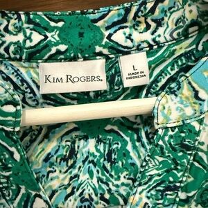 Kim Rogers 3/4 Sleeves Stretch Green Abstract Blouse Size Large Casual Office