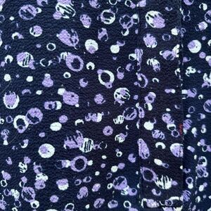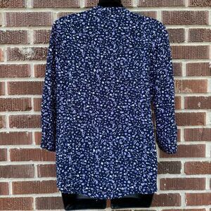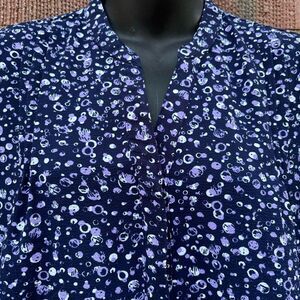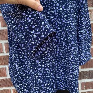 Kim Rogers 3/4 sleeves open half way on front dark blue white/purple spots Sz S