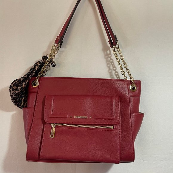 Gold-tone hardware and sleek faux leather elevate the bold style of the Ainsley shopper bag from Kim Rogers®.
