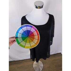 Kim Rogers Black Crochet Poncho Top 1X - Curvy Overlay Tunic - Excellent