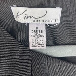 Keywords: Kim Rogers, black dress, sleeveless dress, work dress, career dress, flounce hem, womens dress, size 8, polyester dress, midi dress, cocktail dress, party dress, classic dress, business casual