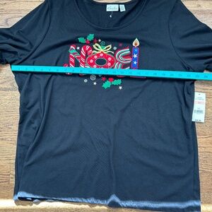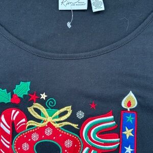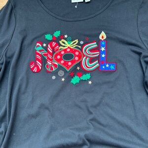 Kim Rogers Black NOEL Christmas Holiday Long Sleeve T Tee Shirt NWT 2X