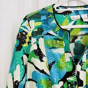 Kim Rogers Blue & Green Floral Shimmery Funky Wearable Art Blazer - Plus 1X