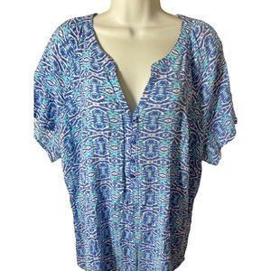 Kim Rogers Blue XOXO V-Neck 4 button Short Sleeve Womens Top 2X