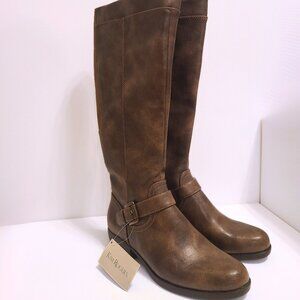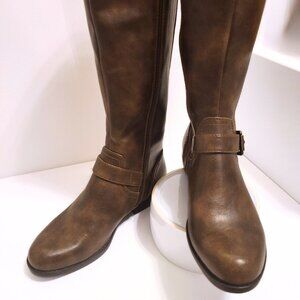 NWT - Step out in timeless style and comfort with these Kim Rogers knee-high riding boots in a rich brown finish. Featuring a sleek silhouette with side buckle accents and an easy side zipper, these boots are both stylish and practical. Designed with comfort in mind, they include: