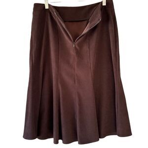Kim Rogers Brown Trumpet Vertical Pleated A-Line Midi Skirt Zip Waist Size 10P