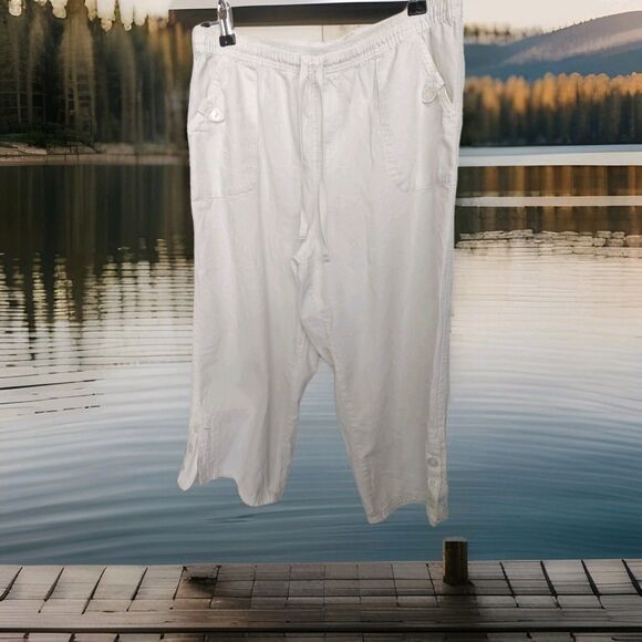 Kim Rogers Capri Pants White Womens Size Medium Cotton