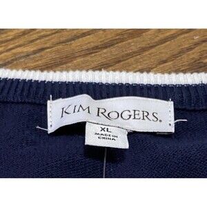 Kim Rogers Cardigan Sweater XL Button Front Scoop Neck Blue White NWT
